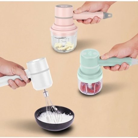 La batidora recargable inalámbrica es versátil y potente, perfecta para cualquier cocina. Incluye una picadora tipo procesadora, que permite triturar verduras, frutos secos, carnes o preparar salsas y batidos en segundos.